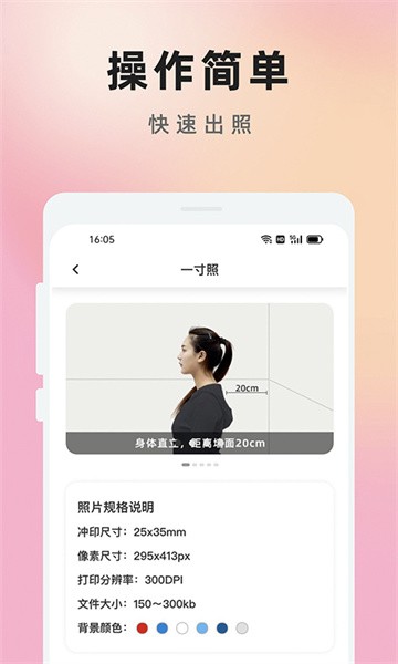 操作简单 快速出照:按照拍摄要求拍摄即可一键出照,还能包邮到家,省时省心