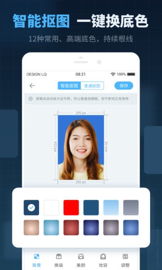 智能抠图,选择背景色,红、蓝、灰多色可选
