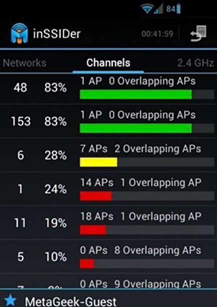 使用inSSIDer可以轻松为您的WiFi网络选择正确的频道。扫描无线环境,选择您的WiFi网络,inSSIDer为您推荐最好的WiFi频道。它还可以快速轻松地执行常规抽样检查,以确保最佳的信道选择,并最大限度地减少或消除相邻网络的干扰。