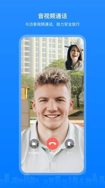 -- 多种视频通话工具,该页面还设置了打开视频、挂断以及开门的便捷工具;
