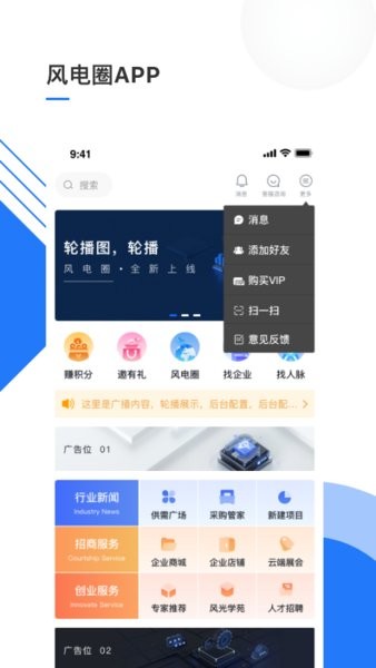 风电圈 App 这是一款专门为风电人打造的一站式服务平台,为您提供最新的行业动态、市场分析、招标采购及新建项目实时进展,帮助您更好地了解行业发展趋势,快速把握商机,促进业务拓展和产品交易。