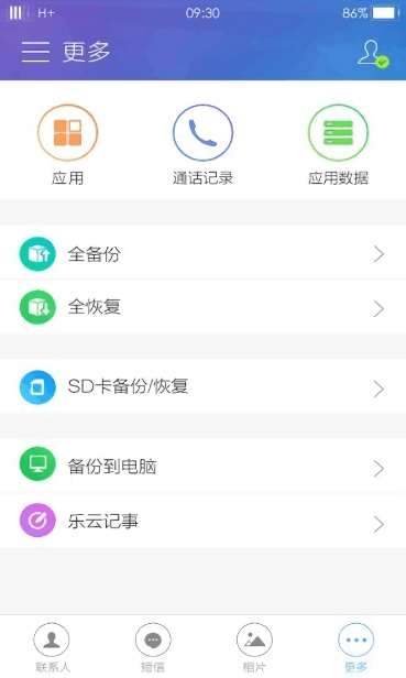 -- 当前版本支持应用程序备份、图像备份、联系人备份、短信备份、通话记录备份、应用数据备份。