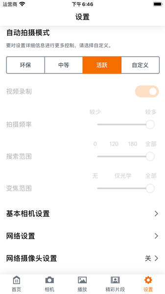 自动拍摄模式、基本相机设置、网络设置、网络摄像头设置等