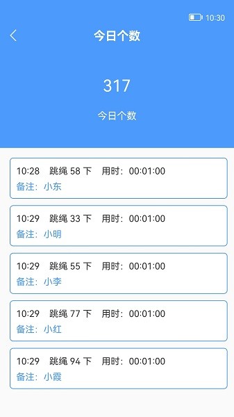 软件的功能非常全面,除了基本的跳绳计数外,还可以记录其他运动比如仰卧起坐、俯卧撑的数据,甚至还能自定义项目。对于学生和老师来说,这个软件简直就是个宝藏,体育老师可以用它布置作业或者组织比赛,家长也能用来监督孩子的锻炼情况。