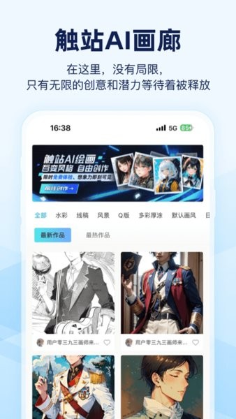 用户只需输入文字描述、选择风格并添加辅助关键词(如动作、服饰、表情等),触站AI即可快速生成对应的绘画作品。