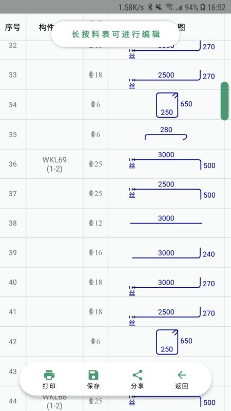 料表阅读器可在Android手机上实时管理料表文件,可对料表文件进行查看、删除、分享、修改等操作。并且可以通过手机连接蓝牙或wifi打印机进行料单、料牌、绑扎料牌的打印。