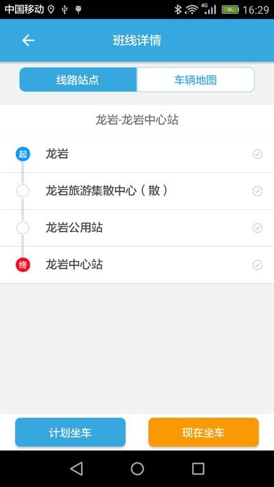 龙岩龙洲e行app(购买汽车票)为用户提供了多种便捷的出行方案,可以在线查看城区公交、城际公交,输入目的地或者站点名就能显示相应的线路导航,如果需要乘坐客运班车的话也能在这里进行线上购票,每天的客运班次一目了然,让出行变得更省心。