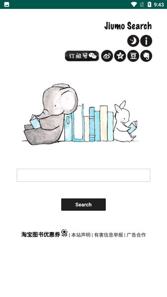 鸠摩搜书是一款很简洁的手机客户端,目的只为帮助读者以最快的速度搜索全网电子书进行阅读,鸠摩搜书app登录手机客户端将外用户带来巨大的搜索便利。