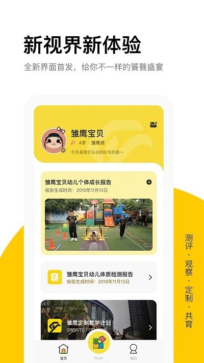雏鹰宝贝APP 是中国雏鹰幼儿运动健康计划的线上产品,面向幼儿家长。家长可以通过APP查看宝宝的体质检测结果,了解孩子的体质情况。雏鹰会根据宝宝的体测数据,分析、生成两类定制化提升方案:幼儿园综合教学方案和个性化的家庭活动方案,并提供课堂视频与人脸智能识别服务,让每个宝宝在幼儿园和家里都能获得科学成长,且家长不再错失宝宝的珍贵成长瞬间!