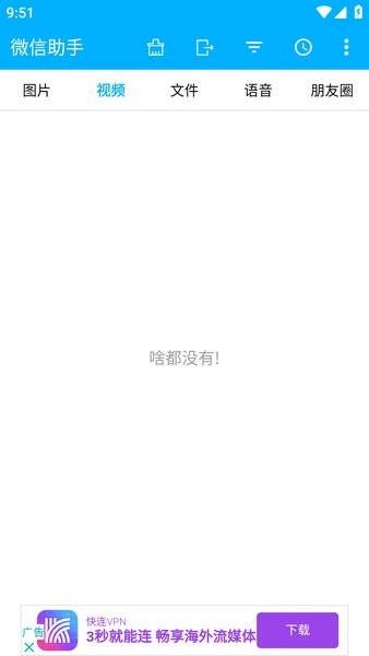 微信助手app是一款好用的文件管理助手,可以处理微信各类图片、视频、文件、语音以及朋友圈内容,一键智能清理,在线分享,还可以自由设置文件大小,查看日历时间,管理十分方便,操作简单,有需要的伙伴看不要错过哦!