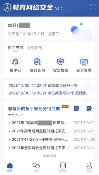 为提升教育系统网络安全保障能力,在教育部科学技术与信息化司的指导下,教育部教育管理信息中心组织开发教育系统网络安全工作管理平台,并推出“教育网络安全”移动端。目前,教育网络安全具备动报平安、监测预警通报处置、定制私有化即时通讯、实时音视频通话及会议等功能。我们将不断迭代升级移动端,完善用户体验。