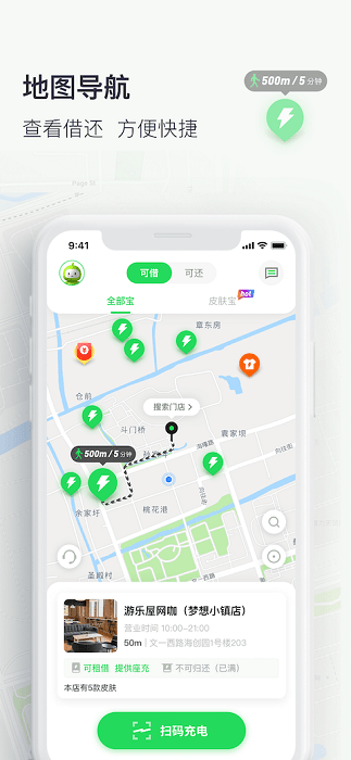 小电共享充电宝软件解决出门手机用电问题,一键快捷扫描即可解锁使用。当你外出遇到手机低电量的情况时就可以打开app查看附近站点分布情况,地图导航轻松前往充电点,随借随用。