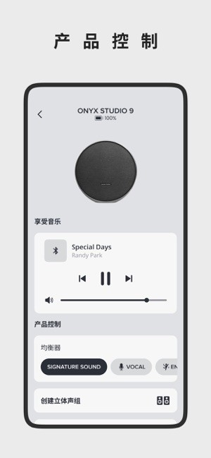Harman Kardon One手机版是哈曼卡顿旗下连接音箱设备使用的控制管理软件,一键添加,快速连接,轻松管理,远程控制,支持均衡器、立体声功能,一键设置调整参数,自定义调节,带来不同的音箱音频效果,灵活控制音乐播放,显示电池电量,操作简单!