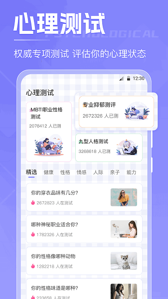 内置心理测试与答案之书,帮助你了解自我,调整心态。