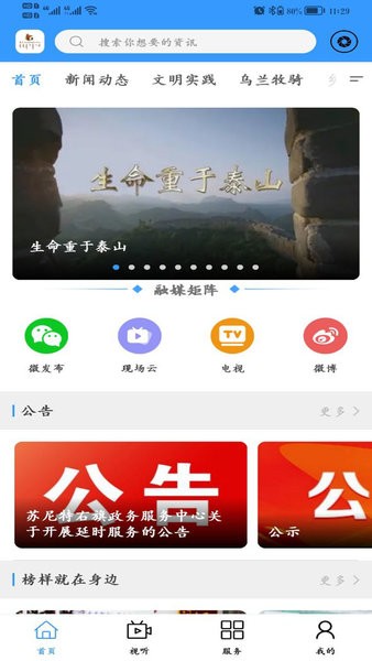 云上苏尼特软件拥有许多的生活服务,可以帮助用户在本地轻松的进行生活,非常多的民生服务都可以在软件之中找到,通过软件随时可以进行生活的缴费,还有许多本地资讯随时可以观看。