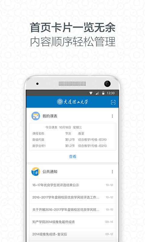 大连理工大学i大工官方版为广大师生所提供的一个可以便利在校生活的校园app,用户能在这里查询校内的各项信息,了解最新的通知公告。还为日常学习提供了相关辅助功能,可了解教师信息、查询课表、图书借阅申请等。