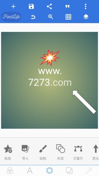 pixellab内置创意贴图素材库,各种艺术字、文本框、心情、节目、图章、卡通等!