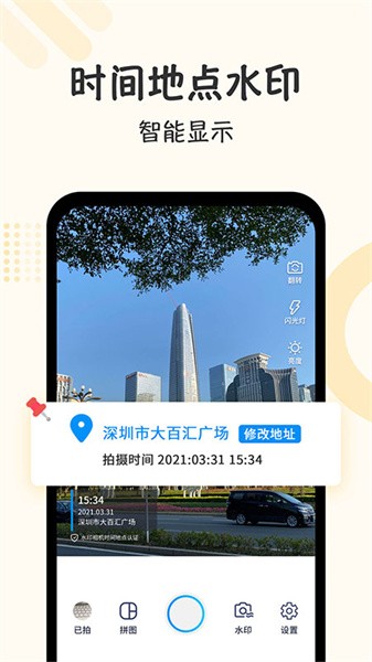 4、自定义水印内容:地点修改、心情编辑,你的水印你说了算;