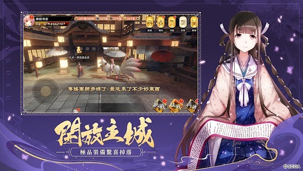 延续SEGA经典街机游戏 IP《战国大战》经典元素。作为稀代军师的你将辅佐大名,在群雄割据的日本战国乱世,招兵买马、强化英雄、提升战力、排兵布阵,一统天下。