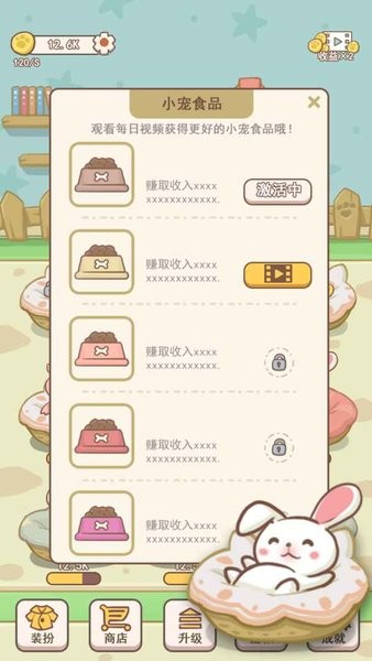 获取更多的放置收益,解锁更多的商店道具,喂饱穿暖。