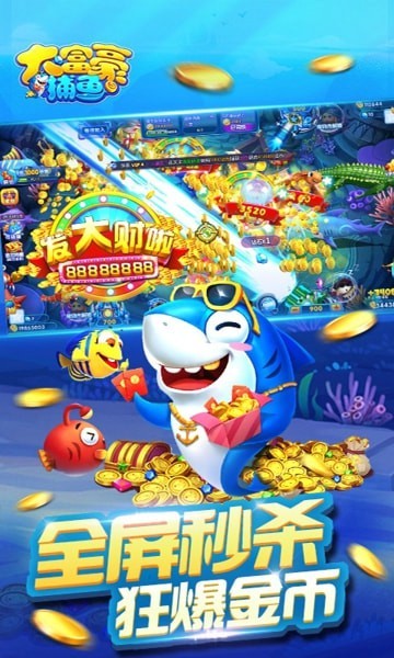 大富豪捕鱼手机版是一款超好玩的捕鱼游戏,画面精美,玩法丰富。游戏里有各种各样的鱼和强大的BOSS,还能和其他玩家真人对战,抢排名拿金币,特别刺激。游戏还提供很多福利活动,比如海量金币、红包还有各种道具装备,让人欲罢不能。