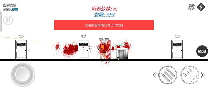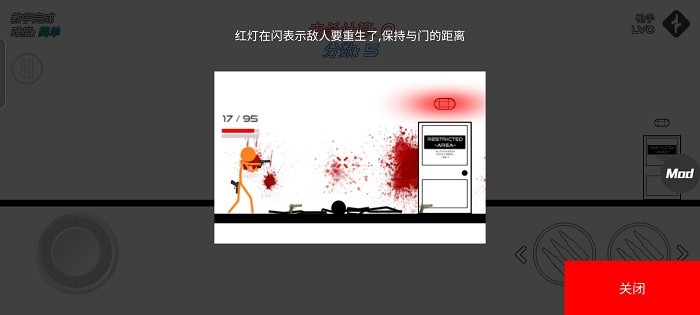 5,游戏中的按键设计非常的经典,在玩家屏幕的左边是控制人物左右移动,连续点击两下还会进行扑越躲避子弹。