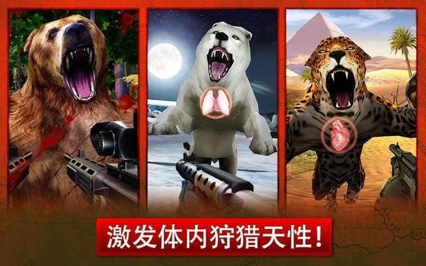 - 超过100种动物可供狩猎,让你拥有身临其境的真实狩猎感受!不过一定要小心那些并不怎么友好的动物朋友:棕熊,灰狼,猎豹可不是坐以待毙的小绵羊!