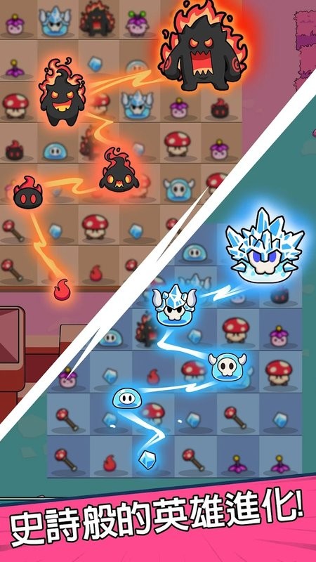 将你的妖怪臣民通过合成,融合为更强大的英雄守护者,获得更强的英雄能力。