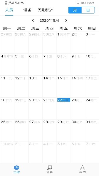 1、清晰的日历显示,能够方便你随时查看每月、每天的人员、设备、资产情况。