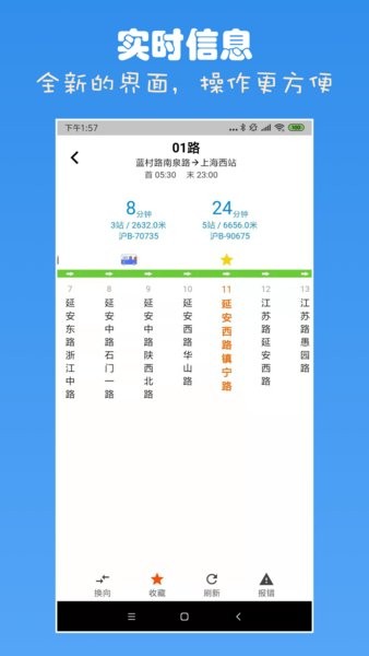 1、实时刷新功能可以在此找到,可以不断刷新任意站点的实时公交;