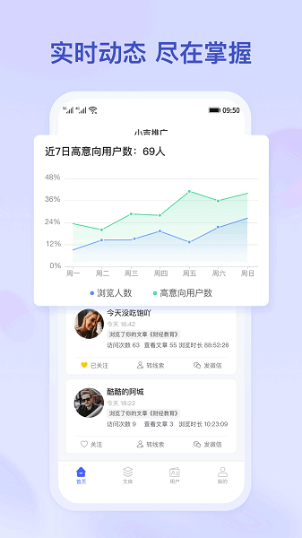 后将素材分享到朋友圈,即可在APP端通过用户浏览数据定位到高意向客户。