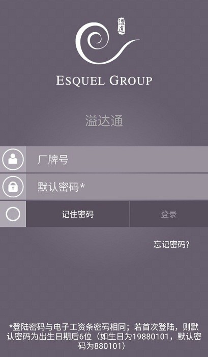 esquelpass软件是一款专门为溢达集团的员工打造的一款服务应用,集团员工只需要使用账号登录,即可查询自己的工资、浏览公司的新闻公告等,非常的方便。