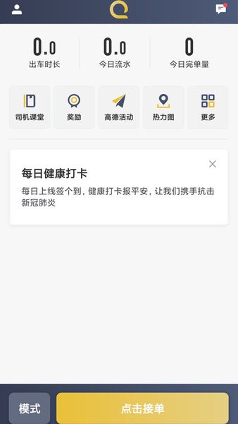 3、系统会自动统计你的出车时长、流水、完成的订单量;