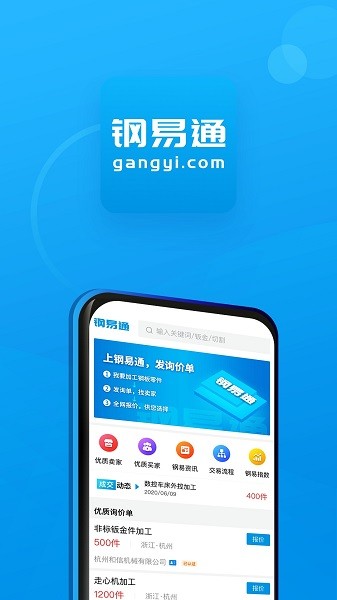 钢易通,致力于金属加工领域,为需要金属加工制品的厂商提供便捷的交易渠道,平台为关联企业优选钢板加工厂商,保障产品加工的质量,责任人可便捷在线与加工场进行沟通交流,互相了解需求和服务价格信息,便捷开展合作,有需要的用户可以下载使用!