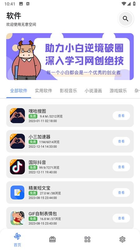 无意空间app是个超级实用的软件库平台,里面的资源丰富到爆,随便都能找到自己想要的东西。无论是学习、办公还是娱乐,这个app都能满足你的需求。最让我喜欢的是它界面简洁,操作起来特别方便,不用安装一堆单一功能的应用,一个地方就能搞定所有的事情。