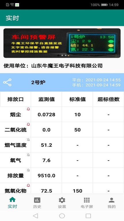 实时更新污染物排放数据,发生超标则进行预警或报警;