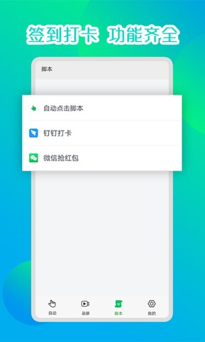类似按键精灵、自动接听、自动抢单、自动连点、自动点赞、自动签到、应用加速器等功能。