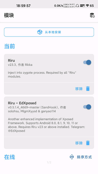 3.下载框架刷机包在恢复模式(Recovery)或用 Magisk Manager 管理器安装 EdXposed框架
