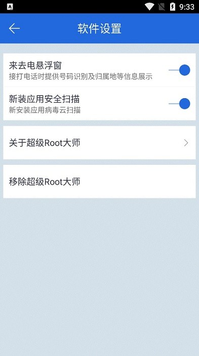超级root大师安卓版这是一个功能强大的root工作,简易的操作让新手也能轻松上手,支持多种机型,可极大满足不同手机用户的使用需求,让root更加简单。一键快捷root,方便又快捷,还能对来电悬浮窗提醒以及安全扫描等人性化功能进行设置。