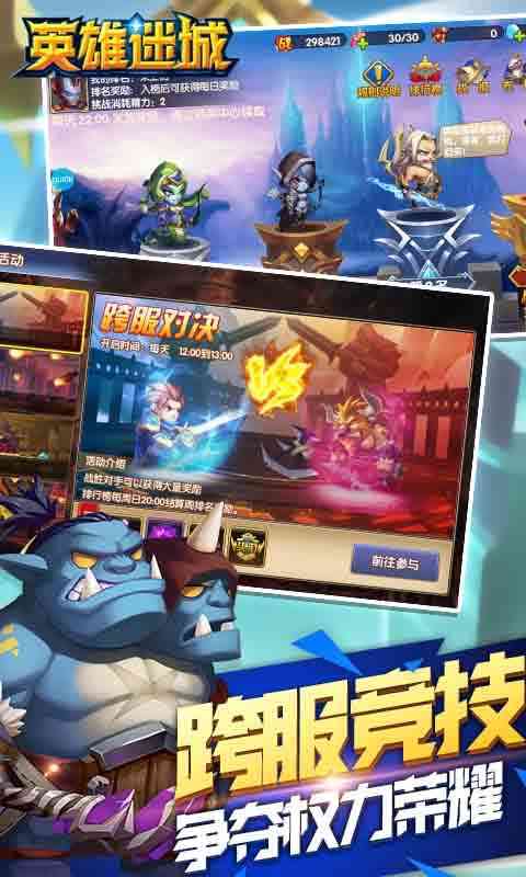 英雄迷城为大家带来全新的即时卡牌对战玩法,各个不同的英雄有着独一无二的技能设定,超炫合体大招能够释放无限威力帮你秒杀敌人,同时此游戏中还支持跨服竞技赛,随时随地上线就能和其他玩家一起在线pk,玩法绝对畅快!