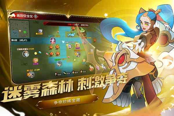 是一个100人同屏混战玩法,有相当高的自由度,可肝也可以休闲,可单人寻宝也可以组队PK,可围追堵截也可以草丛埋伏,另类的自由大逃杀。迷雾森林共分为九层,包括森林、沙漠、银松森林、蘑菇森林、水上部落等9种场景以及数十种局内野外PK道具、特殊地块。新增了安全区域。