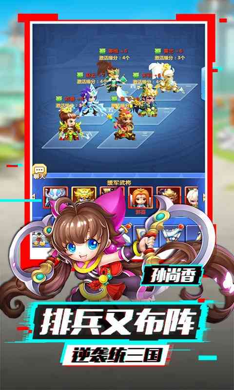 创新策略游戏的战斗设定,多种武将技能自由选择,较传统卡牌更具策略性及趣味性。群雄逐鹿、多种养成主线、数十位绝世名将深度养成、千余种阵容搭配、上百种炫酷技能,全屏杀怪震撼全场,社交系统让你在游戏中不再孤单,加入公会,与朋友一起畅玩体验丰富多彩的q版三国世界,享受与众不同的三国手游新体验。