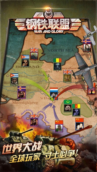 2.钢铁联盟手游官网版游戏中的世界地图.战争名字.战车.大将.军种等所有忠诚于历史原形,