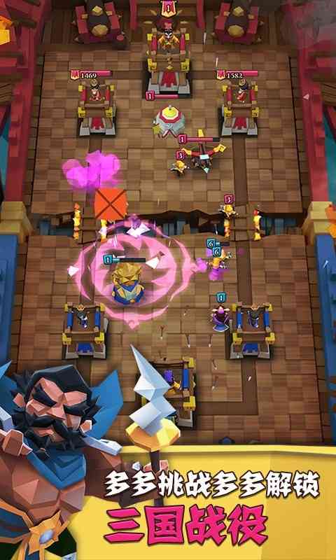 在三国的时代,收集和升级您的卡牌,除了部队、建筑和各位军师,您还有闻名遐迩的战将如赵云、吕布、马超和孙尚香等等。灵活布局、坐镇指挥也需要强大的操作和对将领们技能的熟悉程度。将敌人的皇帝塔推翻会赢得声望,而名誉则是战火年代的最重,为名誉而战,为君主而战!