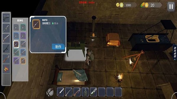 玩家可以在避难所内自由摆放篝火、熔炉、铁匠台、炼金台、枪械加工台等设施。