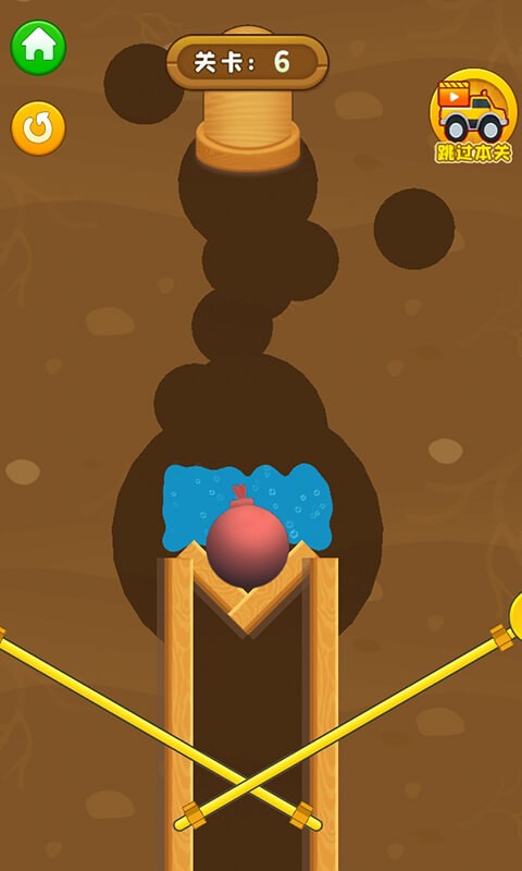 1、简约卡通风格,创意想法想出最佳的营救方案,开启不同的拉针机关;