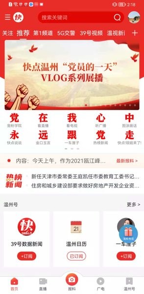 2、推荐页新增头条新闻、竖视频、温州号模块