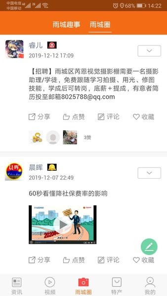 掌上雨城手机版是个挺方便的App,主要是给用户看本地资讯用的。里面有很多视频,可以随时看看热点新闻啥的,还有生活圈子功能,能了解当地的风土人情和新鲜事。我觉得这个App最大的优点就是信息更新快,而且内容挺全面的,政治、财经、民生这些都能看到。特别是还能互动,比如评论、转发或者收藏文章,感觉挺有意思的。