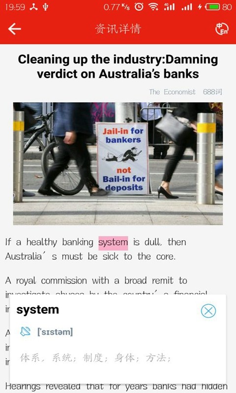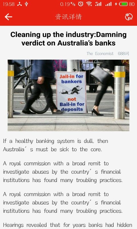 3、阅读文章随时切换中英文;