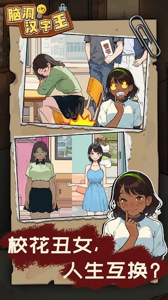 脑洞汉字王手游是一款休闲益智类的解谜找茬游戏,脑洞打开,趣味十足,融入魔性的元素,呈现出卡通的游戏画面,设计出丰富多样的关卡,随你解谜探索,不断挑战,通过细心观察,发现谜题线索,尽情闯关,操作简单易上手,老少皆宜!